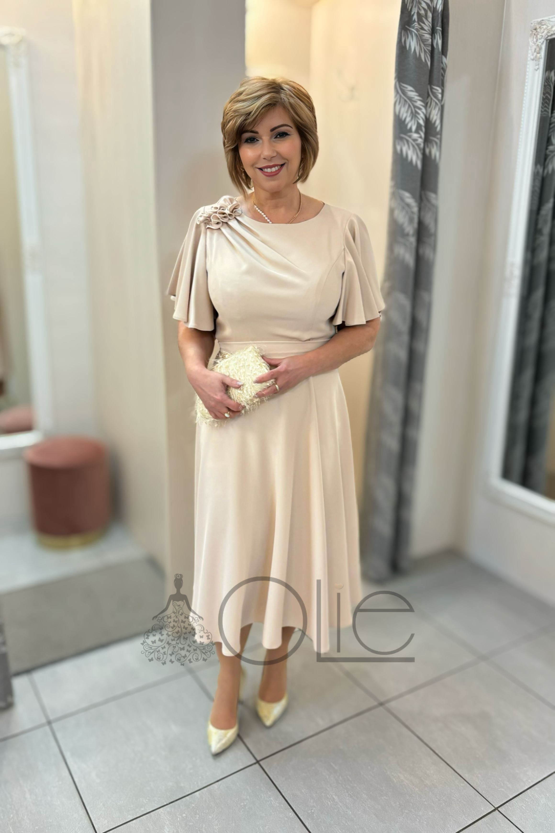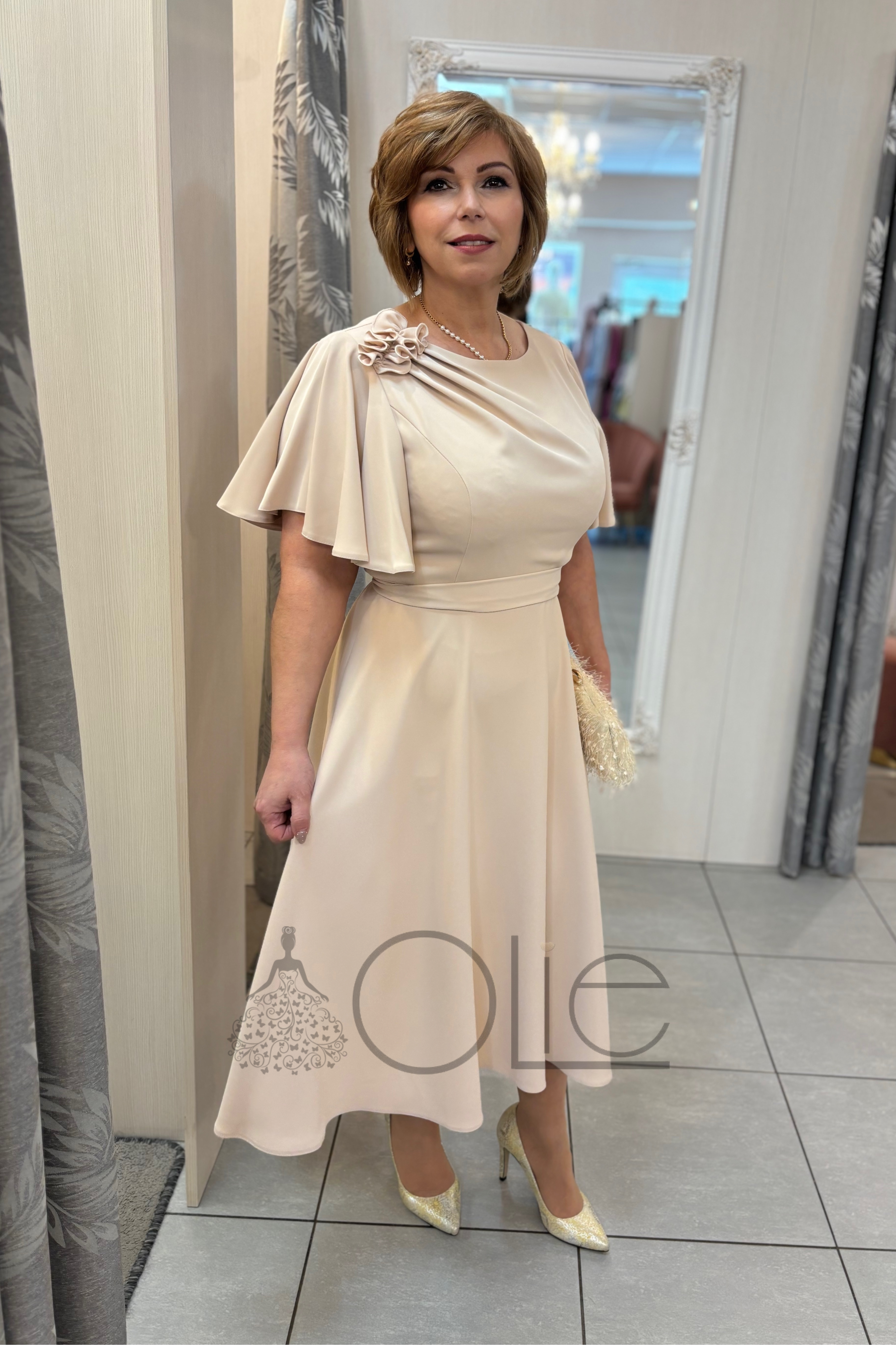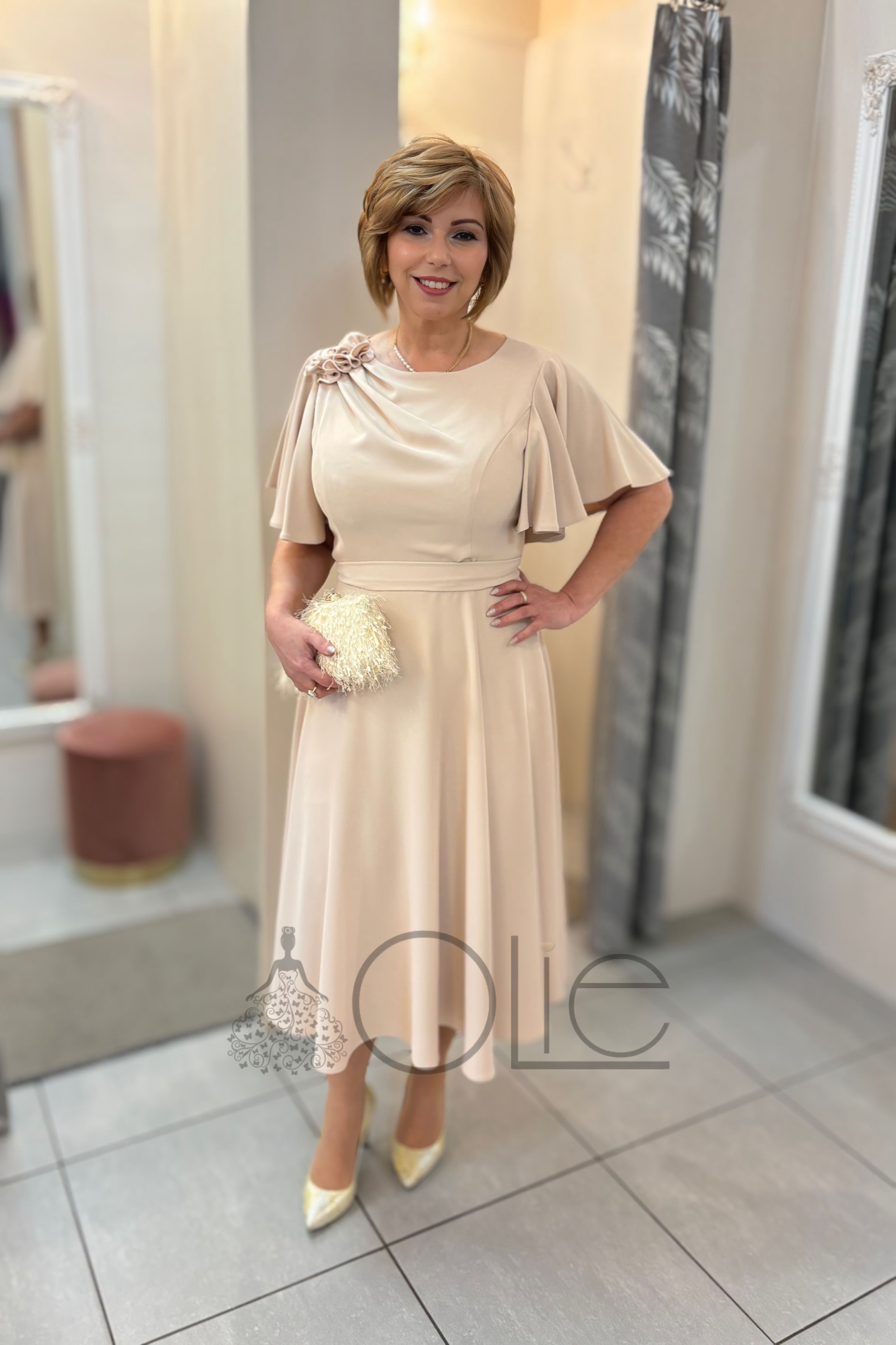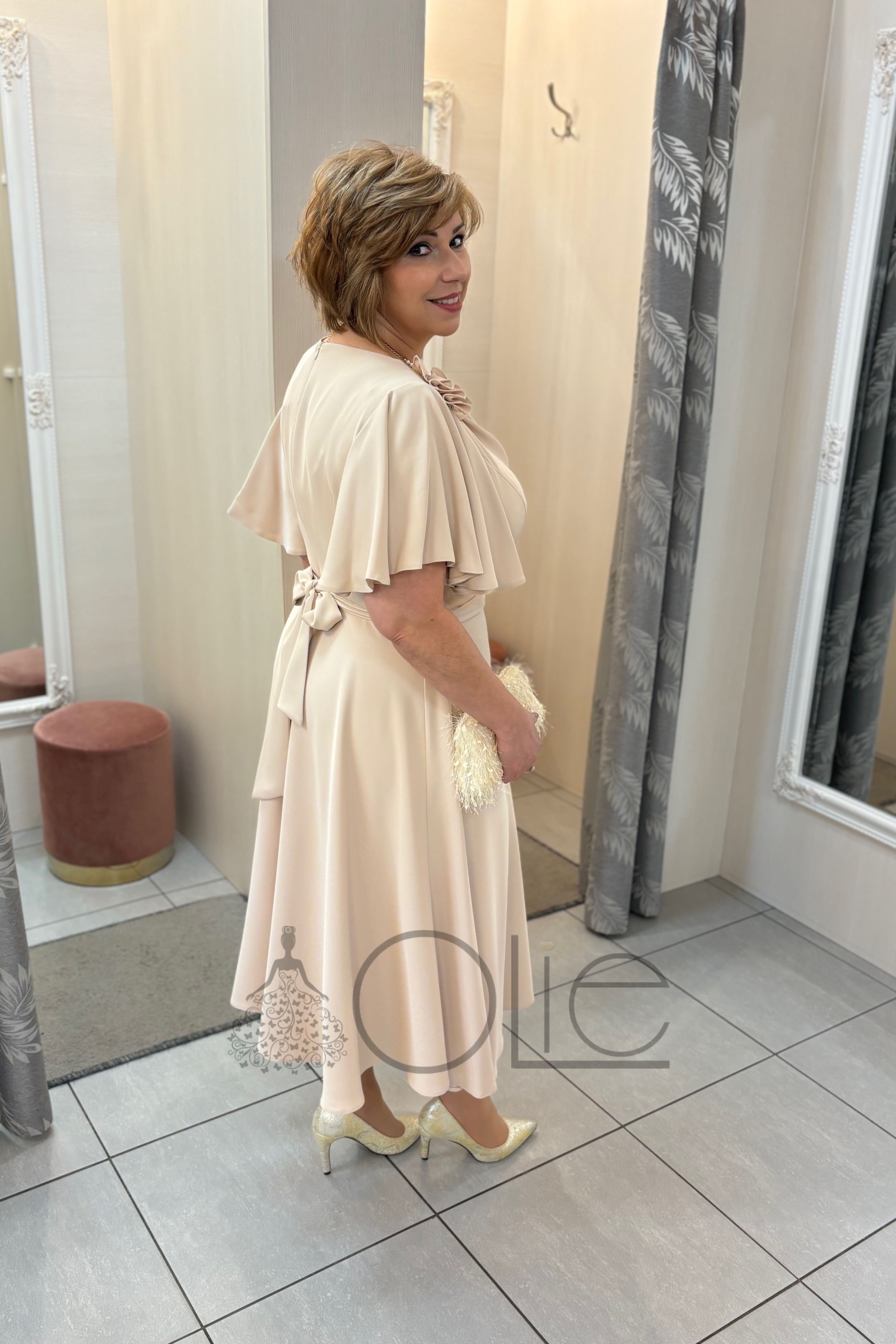 Béžové spoločenské šaty pre svadobnú mamu Luna