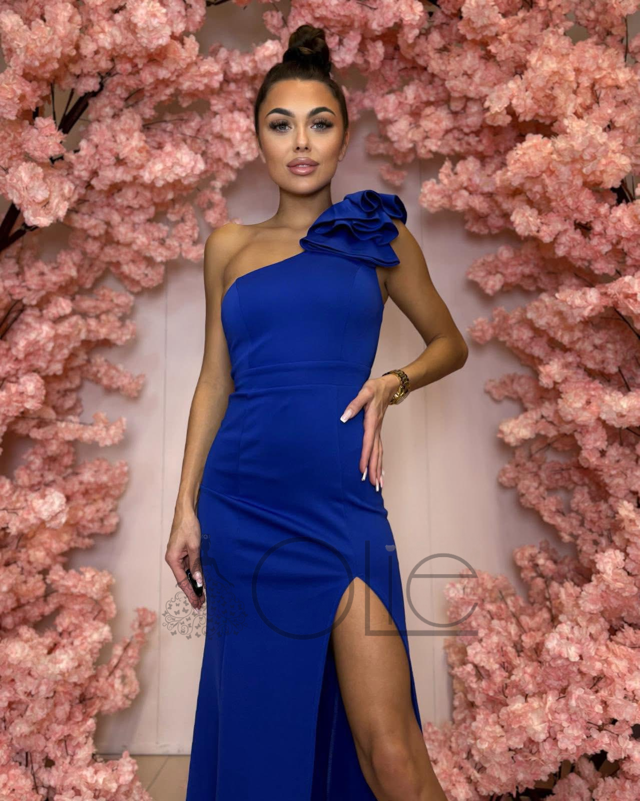 Kráľovsky-modré spoločenské šaty s volánom