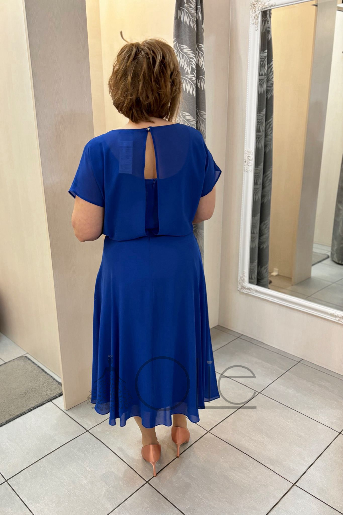 Ľahký a príjemný materiál je ideálny aj na celodenné nosenie. Tieto dámske spoločenské šaty sú skvelou voľbou pre ženy, ktoré chcú vyzerať elegantne a cítiť sa pohodlne počas celej udalosti. Vzadu sa zapínajú na gombík a zips.