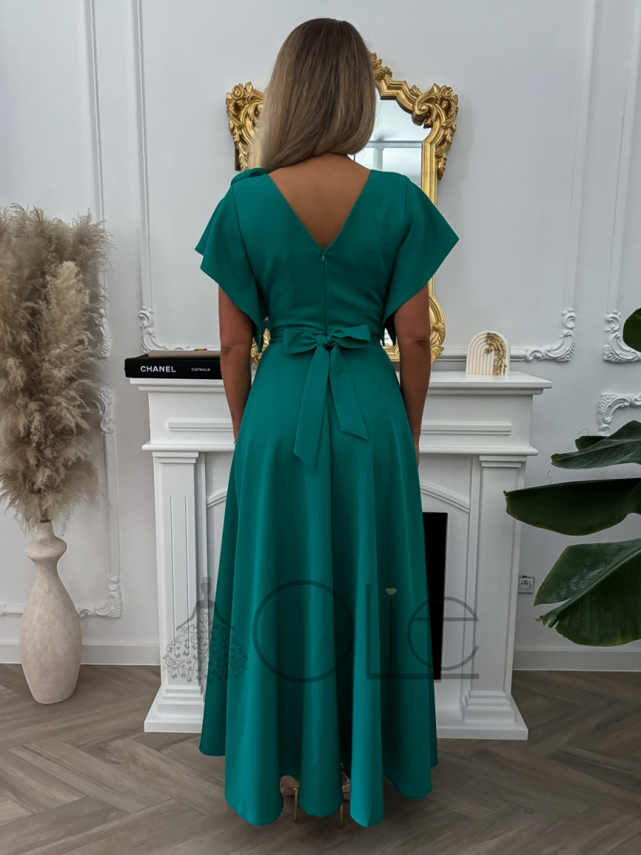 Tieto dlhé smaragdovo zelené spoločenské šaty pre moletky sú stelesnením nadčasovej elegancie a ženskosti. Jemný splývavý materiál krásne kopíruje postavu a zároveň poskytuje pohodlie počas celého večera. Dominantným prvkom je nápadná ozdoba v tvare kvetu na ramene a viazanie v páse, ktoré opticky zoštíhľuje siluetu.